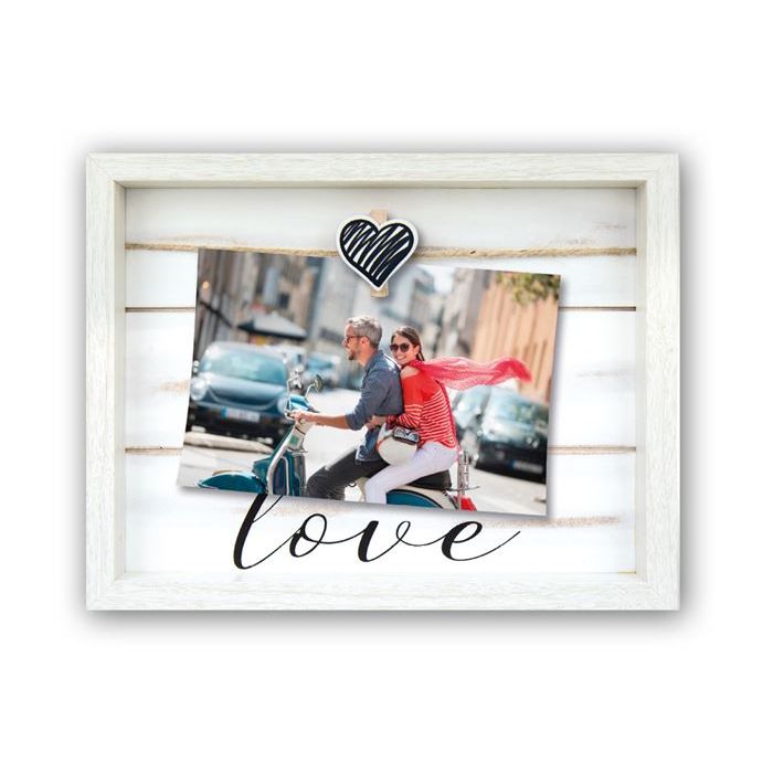 Der CX64W Vivienne White von Zep Italia verwandelt deinen Lieblingsmoment in ein Kunstwerk. Dieser stylische Holz-Fotorahmen bietet Platz für ein Foto in 10x15 cm. Durch seine rustikale Optik fällt der Rahmen sofort ins Auge, die Maße inklusive Rahmen betragen 24,5x18,5 cm. Mit einem einzigartigen Klemmsystem befestigst du das Foto sicher an einer Schnur im Rahmen.