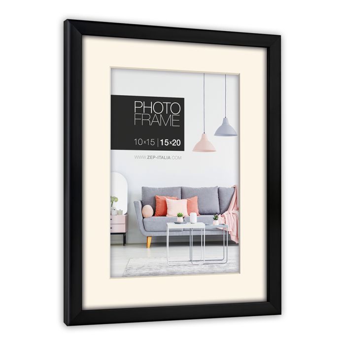 Bei Lieferung erhältst du den stylischen Zep Bilderrahmen NP68B Edison Black, passend für Fotoformate 10x15 cm oder 15x20 cm.