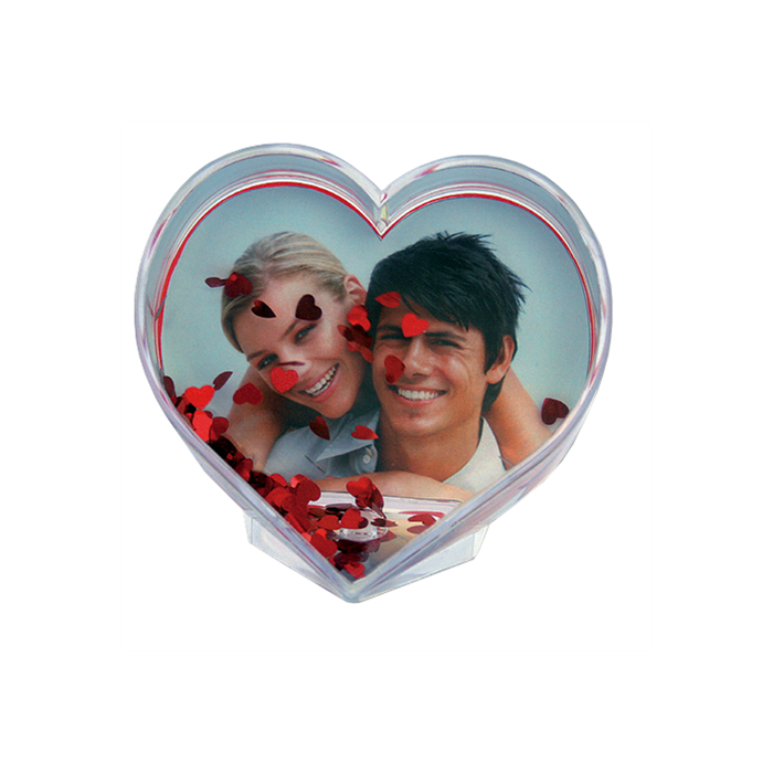 - Charmantes Design: herzförmige Bilderrahmen mit Herzchen-Glitzern.