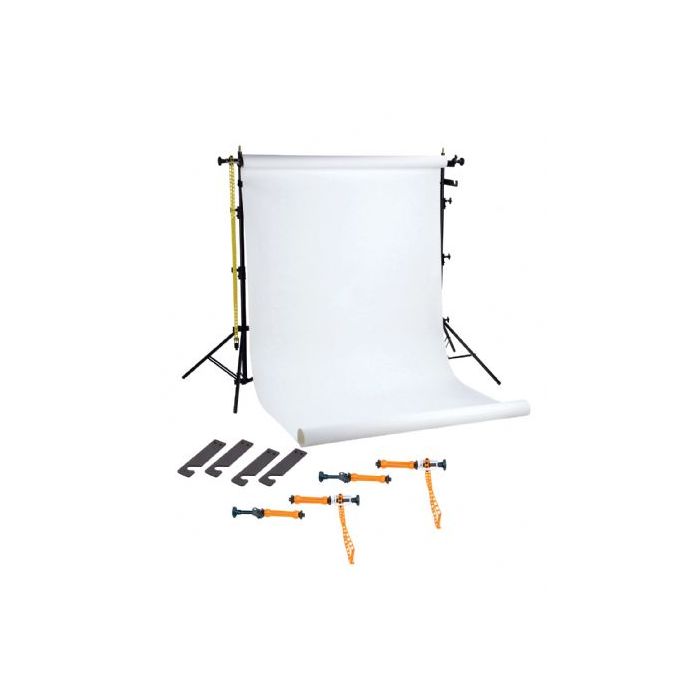 Diese komplette Hintergrund-Bundle bietet ein stabiles und erweiterbares System mit langen Stativen, Rollenhaltern, Kettensets und CBH-5 Klemmen. Perfekt, um mehrere Papier- und Vinylrollen schnell und stabil im Studio zu nutzen.