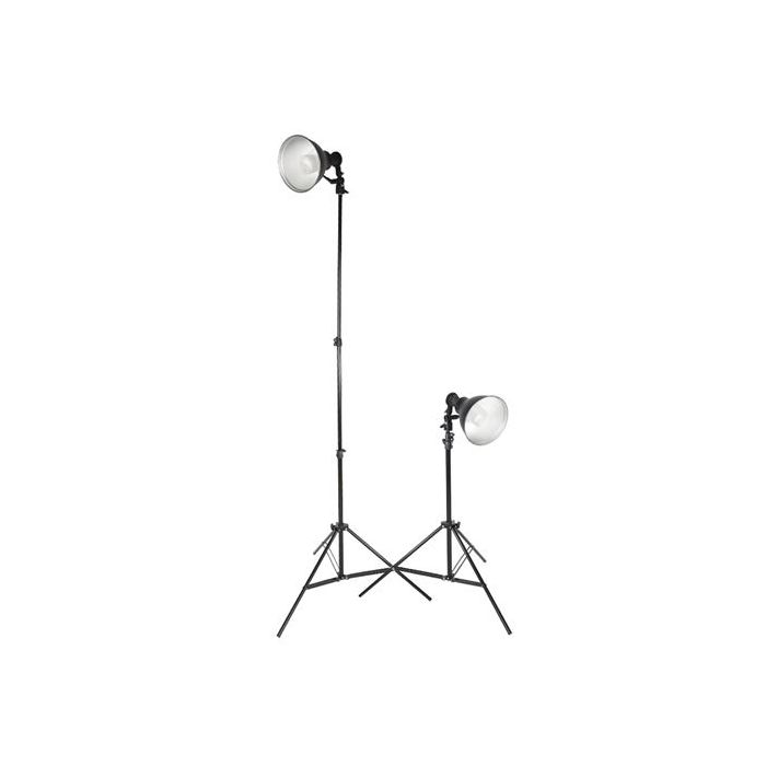 Zum Set gehören folgende Accessoires: 2 Lampenfassungen (LHER-2040), 2 Reflektoren (ø 19,5 cm), 2 Spiral-Leuchtmittel (40W) und 2 Stative (LS-804, 2 Meter). Mit dieser umfangreichen Lieferung hast du alles, was du für jedes Licht-Setup benötigst.