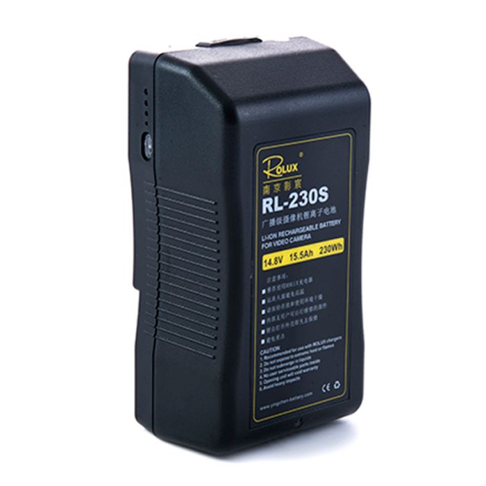 Der Rolux V-Mount Akku RL-230S ist ein super professioneller Lithium-Ionen-Akku mit einer Kapazität von 15,6Ah und 230Wh. Die Batterieanzeige erfolgt über 4 LED-Indikatoren an der Seite des Akkus. Beachte bitte: Ladegerät ist nicht im Lieferumfang enthalten.