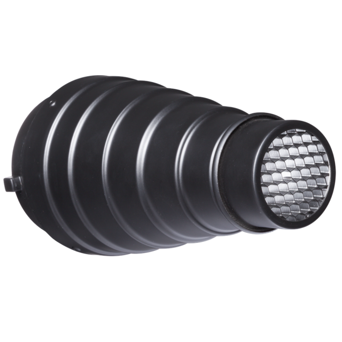Beim Kauf bekommst du zum Snoot auch ein Wabengitter mit Adapter sowie ein Set aus 5 Farbfiltern dazu. Dieses Rundum-Paket ermöglicht dir, direkt loszulegen und den Lichtstrahl genau so zu formen, wie du es dir vorstellst.