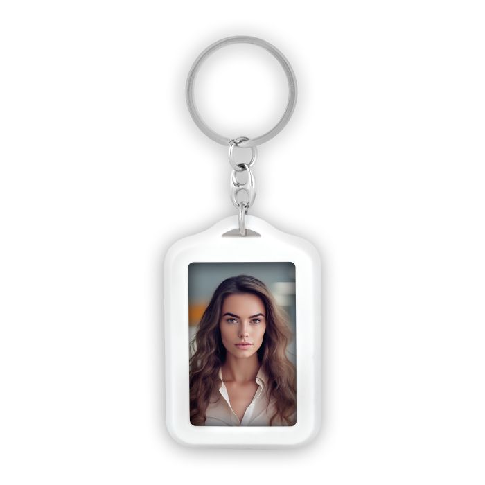 Das robuste Gummi fühlt sich angenehm an und bleibt selbst bei täglichem Gebrauch lange schön. Durch die klare rechteckige Form wirkt der Schlüsselanhänger modern und passt mühelos zu jeder Stilrichtung. Mit zwei kleinen Fotos verwandeln Sie ihn in einen persönlichen Mini-Bilderrahmen, der Sie überall begleitet.