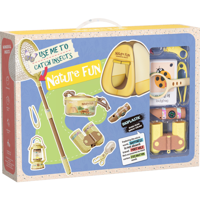 Die 3-in-1-Pfeife mit Kompass und Taschenlampe sorgt für den letzten Schliff am Abenteuerfeeling. Die beiliegenden Lernkarten unterstützen beim Erkennen verschiedener Insekten und fördern das Sprachverständnis. Im Set enthalten: Spielzelt, Fernglas, Lupe, Insektennetz, Pinzette, 3-in-1-Pfeife, Taschenlampe und Lernkarten – alles, was kleine Entdecker für spannende Stunden im Freien brauchen.