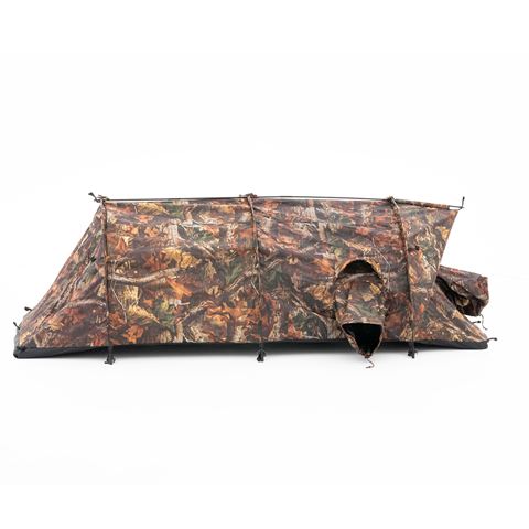 Tarnung ist alles: Das Falco Mark IV ist in 3 bewährten Tarnmustern erhältlich – grün, braun oder Schilf. Mit den integrierten Schnüren befestigst du zusätzlich Äste, Gras oder Laub, um dich noch besser in die Umgebung einzufügen. Für zusätzliche Tarnung kombinierst du das Zelt mit einem separaten Tarnnetz.