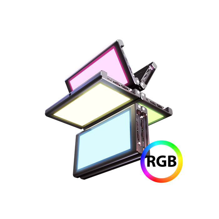 Die PockeLite F7 Fold startet sofort nach dem Aufladen über das mitgelieferte USB-C-Ladekabel, und der eingebaute Li-Ion-Akku sorgt für etwa eine Stunde Laufzeit bei Dauerbetrieb auf voller Leistung. Durch das 1/4"-Gewinde montierst du diese RGB-Lampe an jedem Standard-Stativ, während der Cold-Shoe-Adapter sie sicher an deiner Kamera fixiert. Mit dem Magnetstreifen bringst du sie ganz einfach an Metallflächen an. Für weicheres oder gezielteres Licht verwendest du die mitgelieferte Wabe oder den Diffusor. Beide Lampenhälften haben je ein eigenes OLED-Display und Bedienfeld, sodass du, wenn gewünscht, Farben und Effekte für jeden Teil separat einstellen kannst.